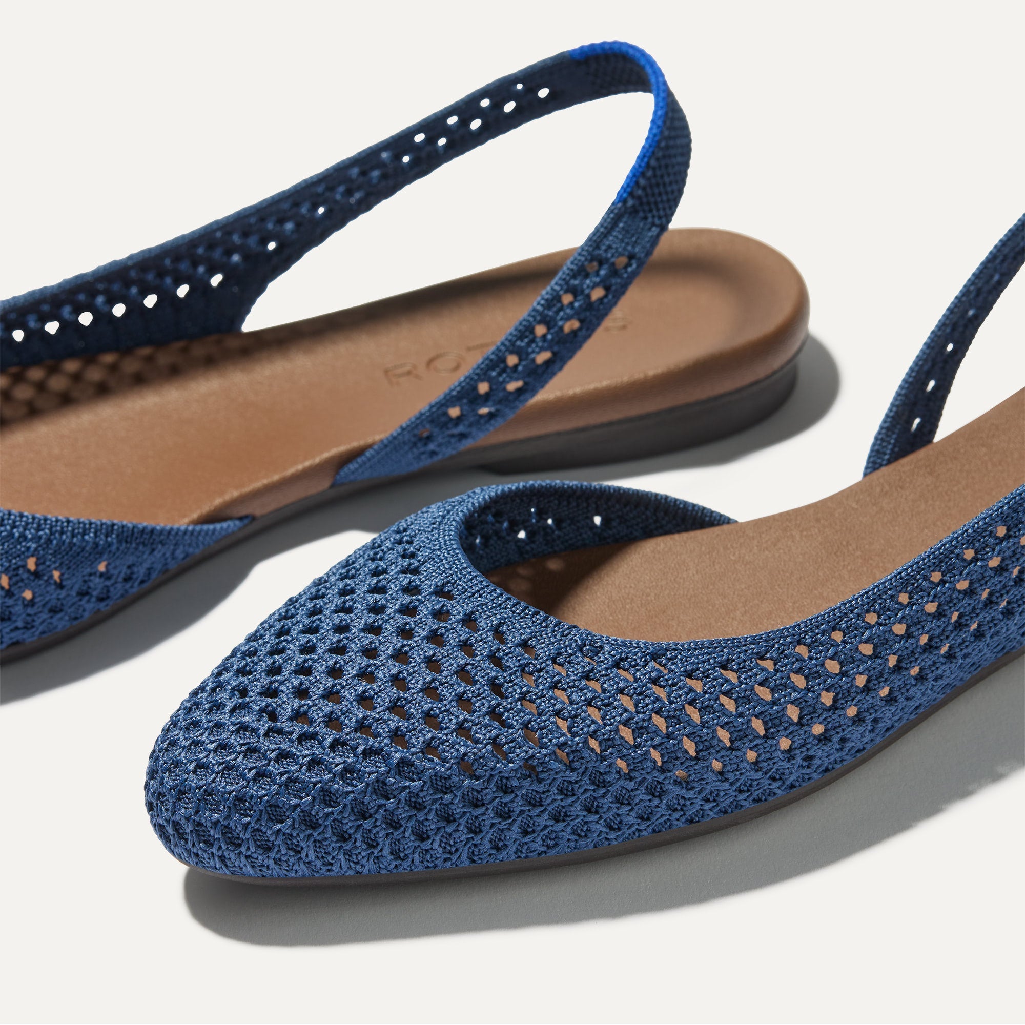 Airy, mesh upper in indigo blue, with our signature almond toe.