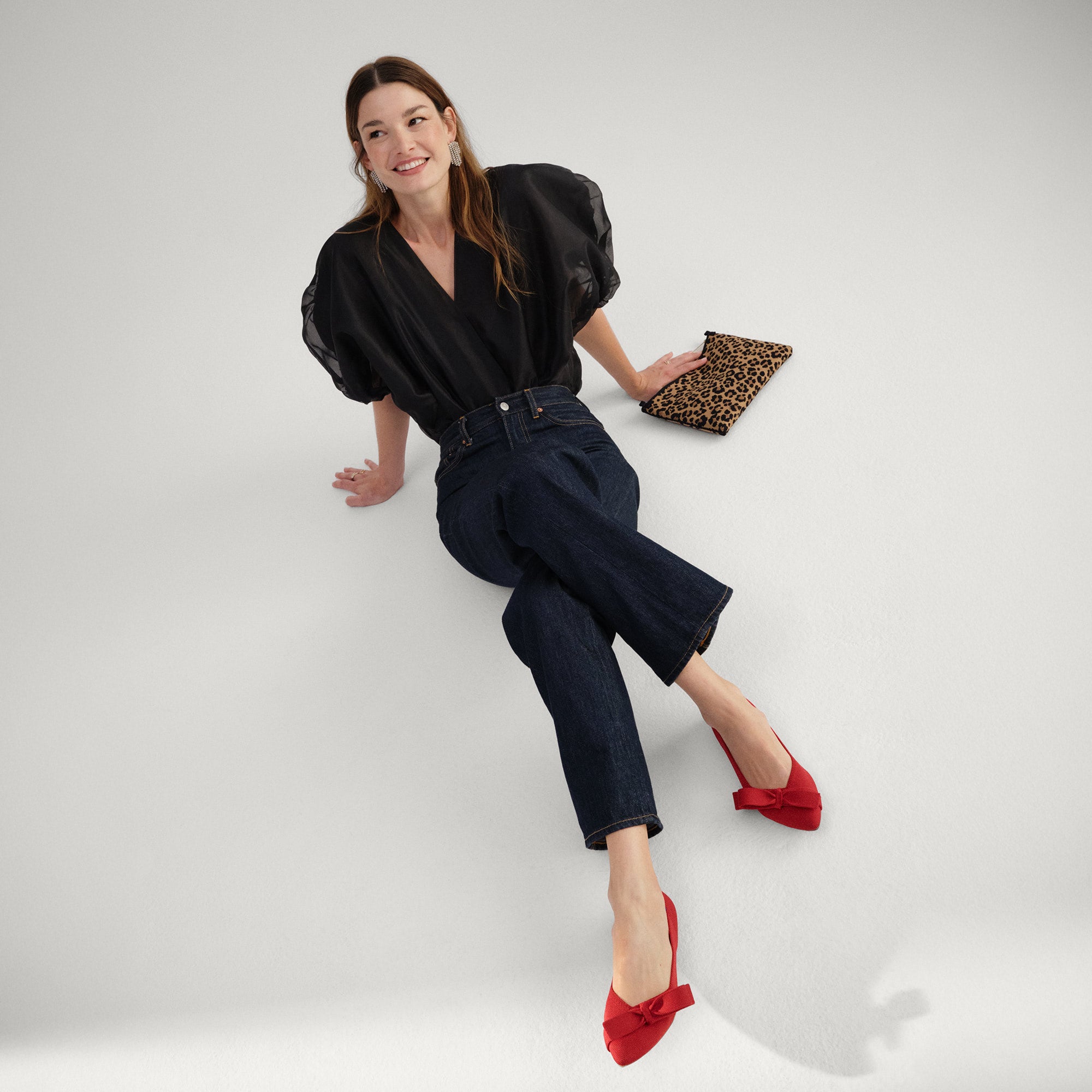 Premium knit upper in red with a chic bow on the vamp.