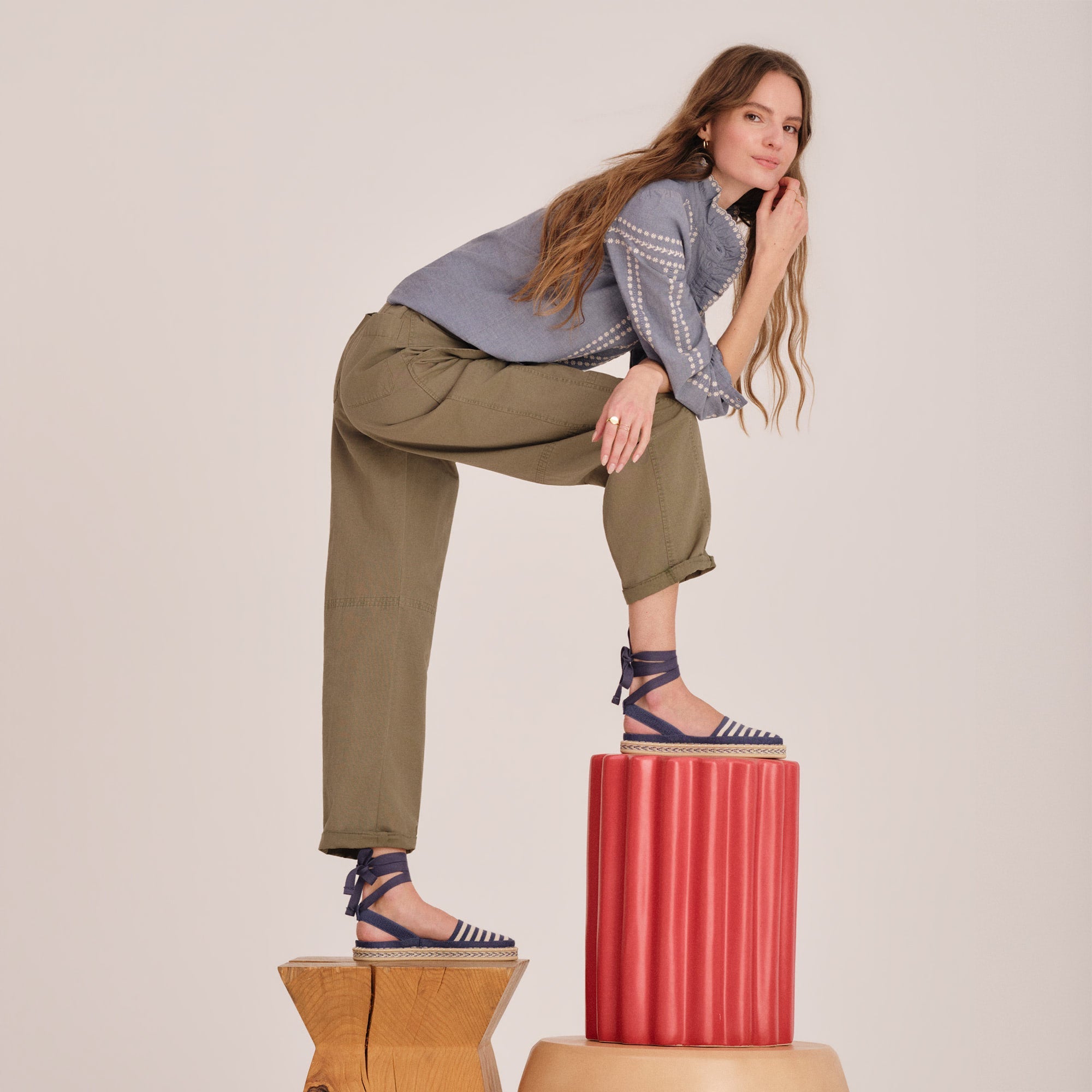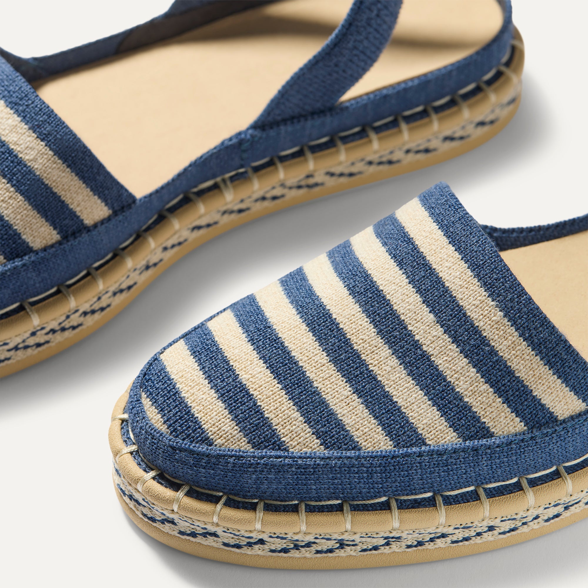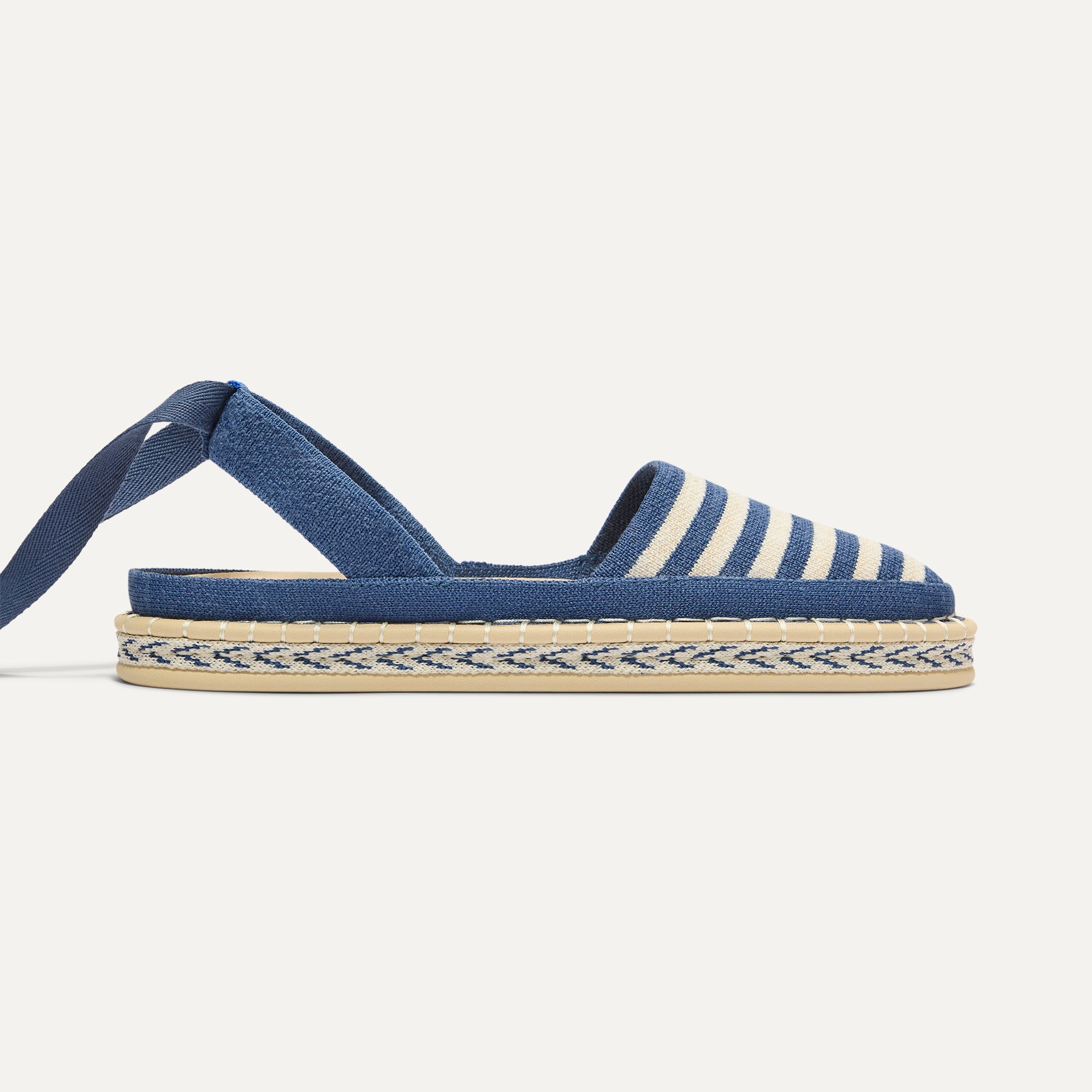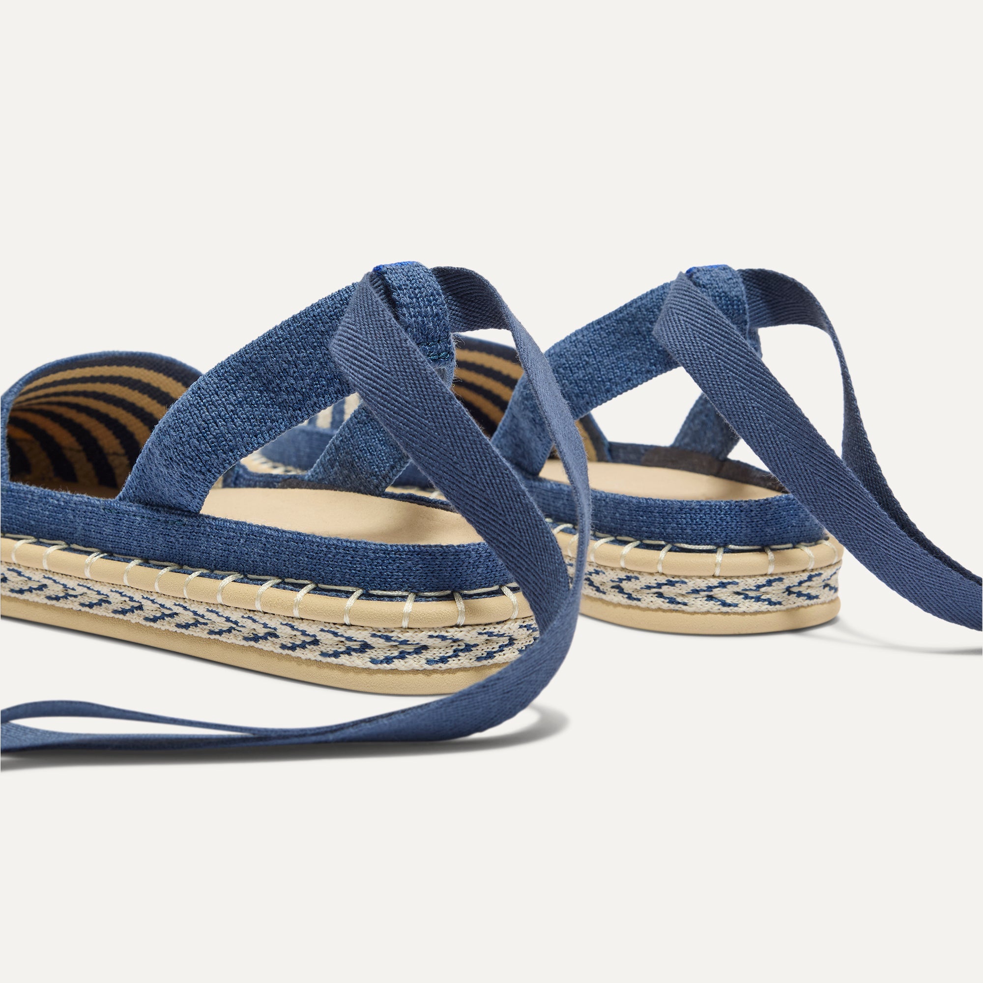 Classic espadrille look with removable indigo tie-up ankle straps.