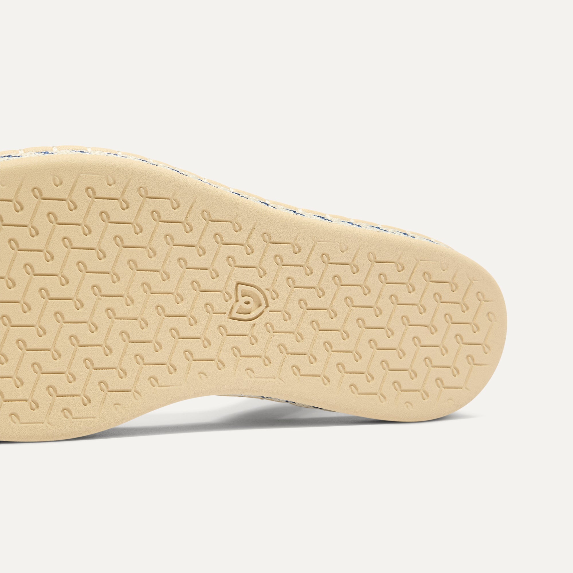 Flexible knit upper in indigo and ivory stripes-made from a blend of hemp and recycled plastic bottles.