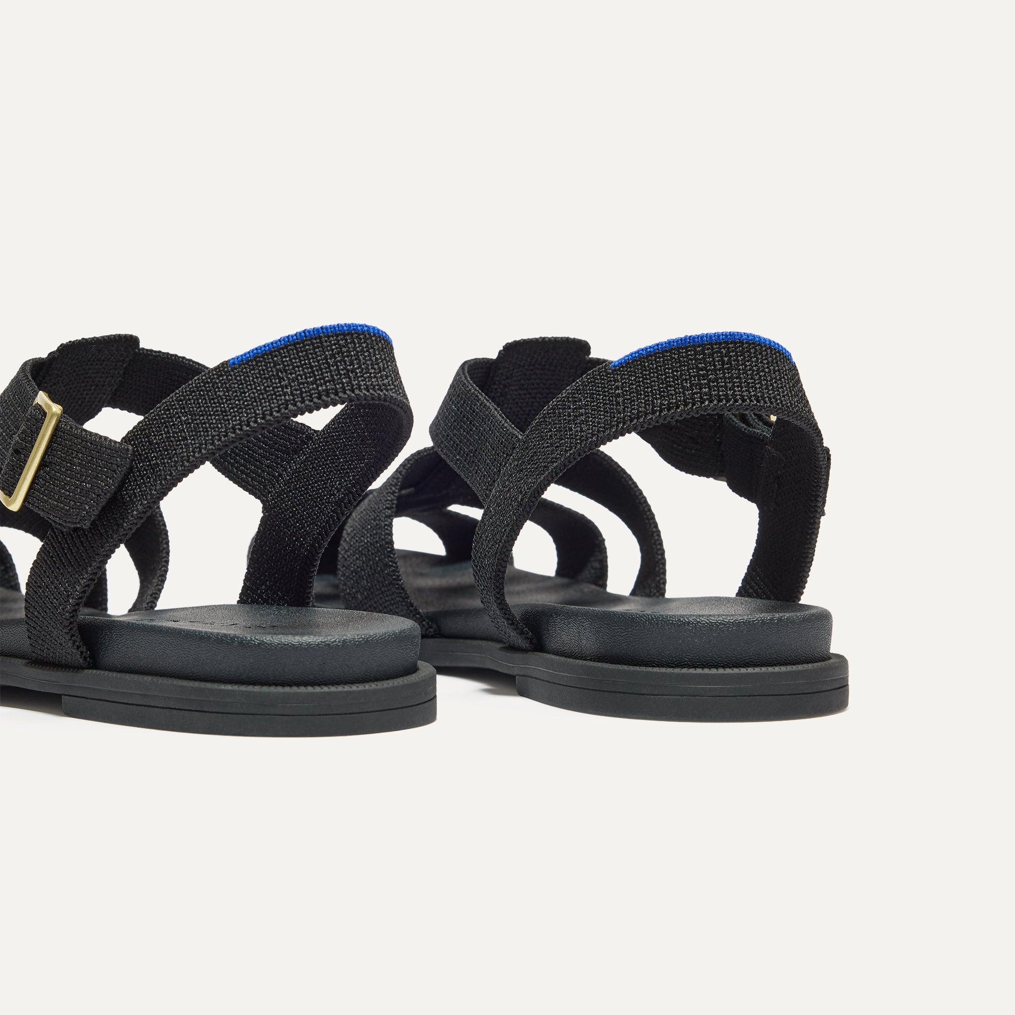 Softly knit upper in black features a fisherman style for a sleek look.