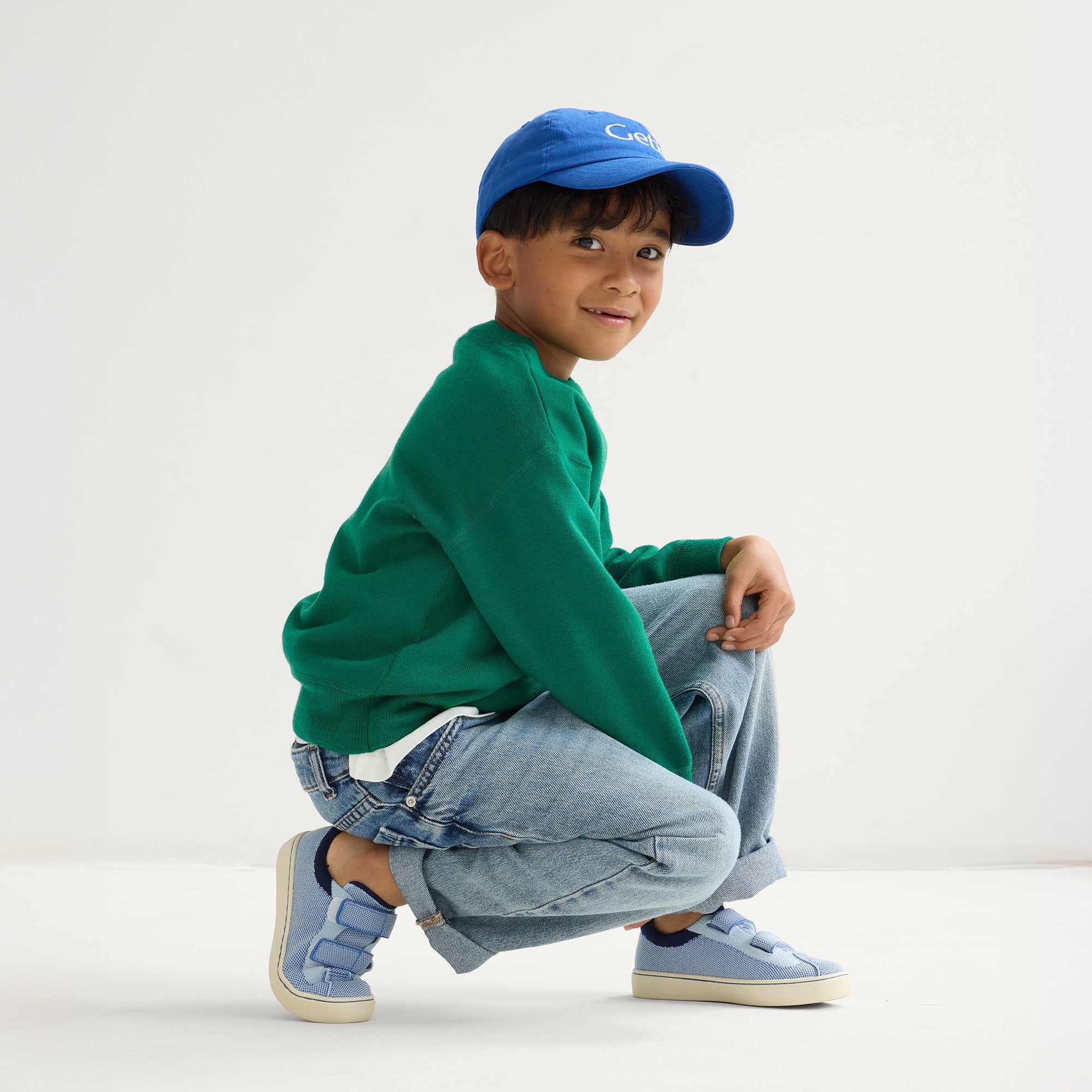 Comfortable, adjustable hook & loop straps in light blue for easy on and off.