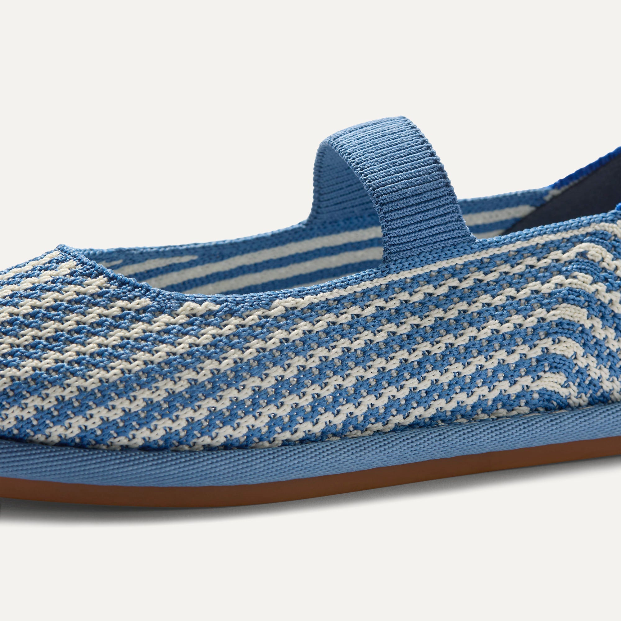 Ivory and light blue striped upper with a light blue elastic strap.