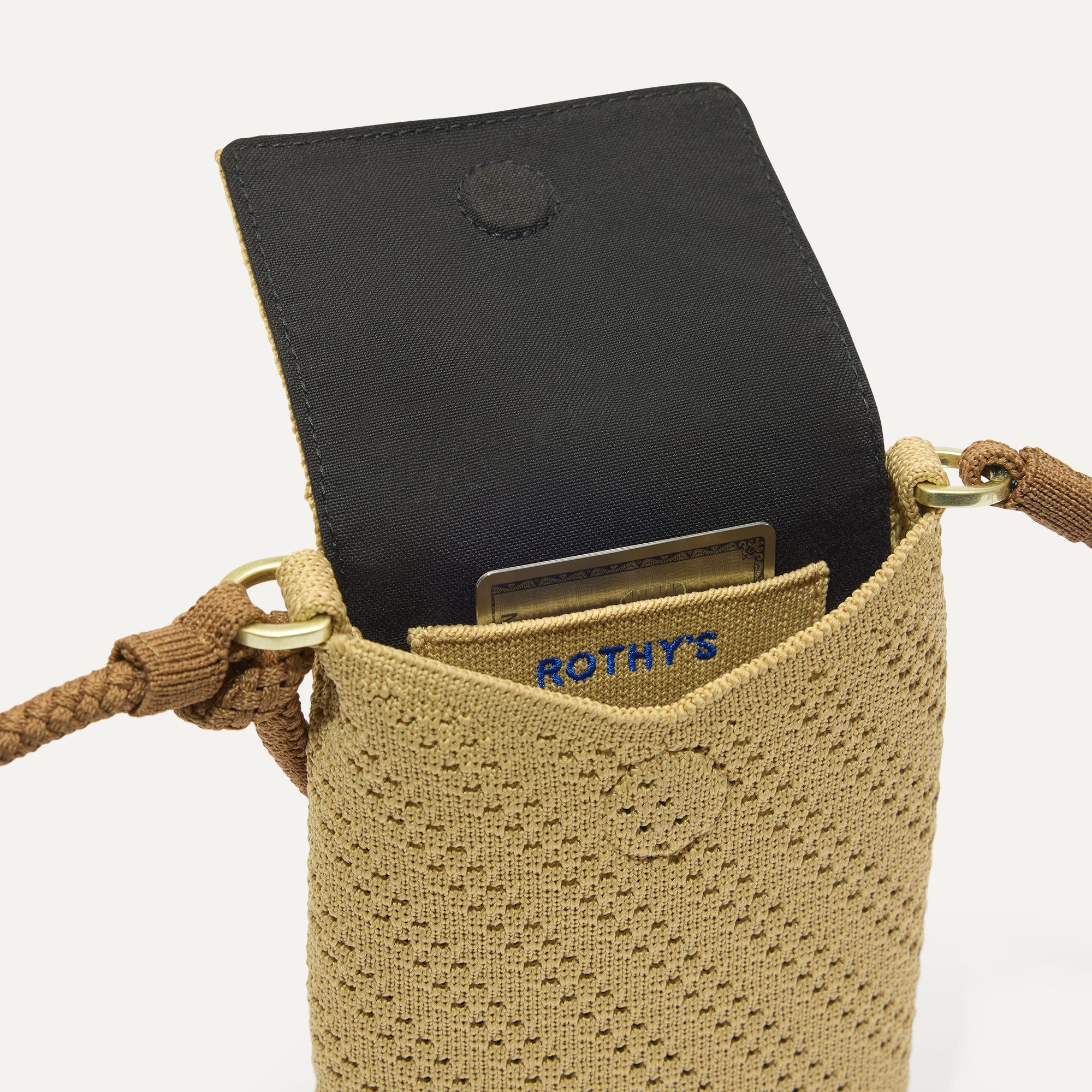 Sleek, compact design in a toasted wheat crochet open-knit.